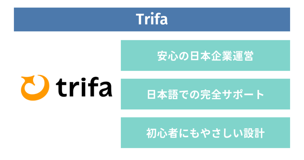 Trifaは日本企業が運営しており、日本語での完全サポートが受けられる点が大きな魅力です。